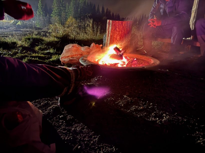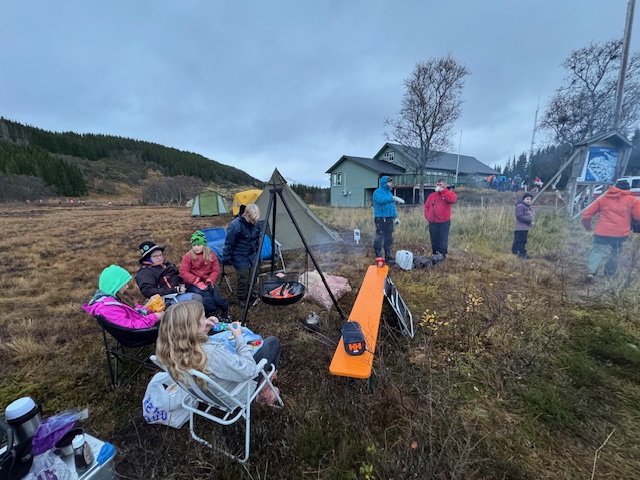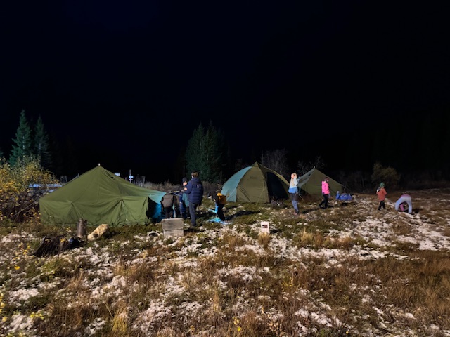 Fredag ankom vi og fikk satt opp leiren, ute på en myr i litt ny snø. Teltene kom fort opp og patruljene Oter (stifinnere) og Blåhval (Vandrere) jobbet fint sammen og fikk satt opp de nye dometeltene. Det ble fyrt opp leirbål litt utpå kvelden som de fleste fikk seg kakao, og kveldsmat ved.