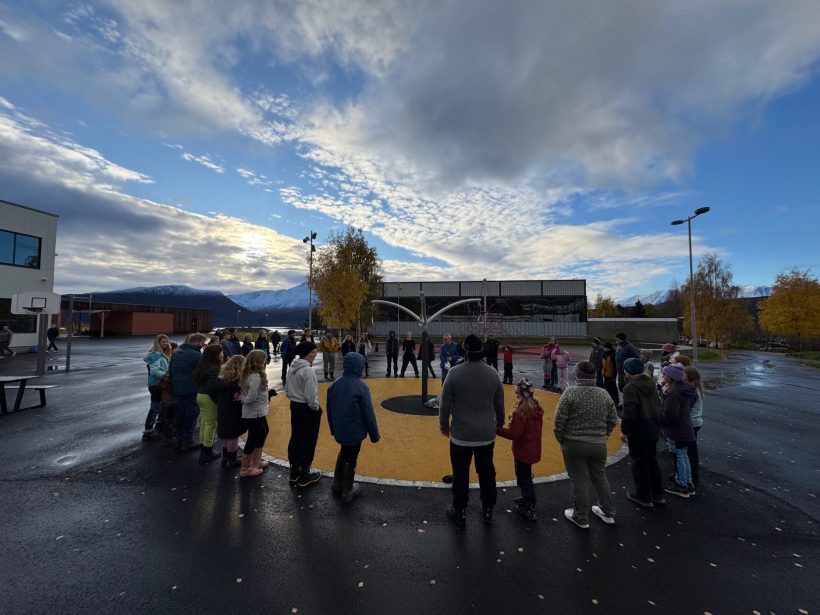 Etter vi hadde pakket ned utstyret også på skolen ble det seremoni og merkeutdeling, alle fikk Jota-Joti 2025 merket, det ble også påskjønnet et ekstra merke til de som hadde utmerket seg på å ta kontakt og prate med de andre speiderne verden rundt, det var Ada-Viktoria Eidissen, May-Eline Olsen og Tuva Luvise Wiken som hadde vært i kontakt med flest for 6. Narvik Speidergruppe.