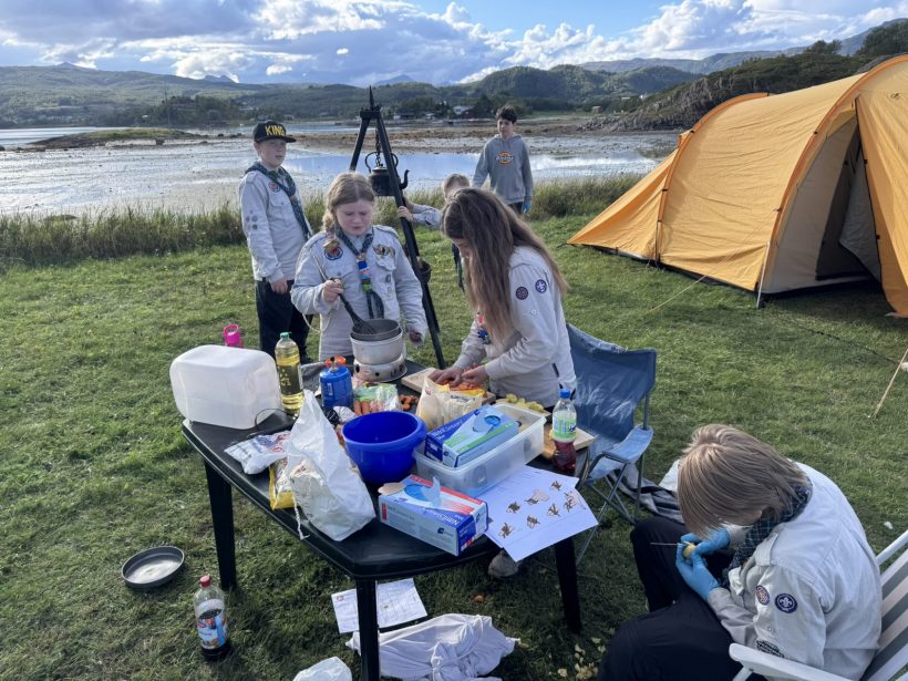 Det hele startet fredag med bygging av patruljens leirområde, sette opp telt og komme seg på plass. Før det var åpning av kretsbannerkonkurransen, før det var å finne roen for natten under nordlyset og en stjerneklar natt, noen i telt og andre i hengekøyer.